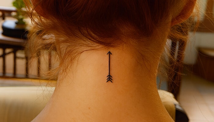 An arrow tattoo is ideal for girls who want to symbolize their challenges through resilience, direction, and progress.